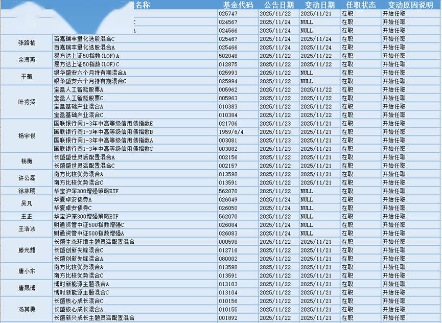 按照巨灵统计的数据显示,此中今天(11.24)有72只基金产物发布基金司理去职通知布告,比来1个月(10月25日-11月24日)最受公募基金关心的是立讯细密,正在任职的11年又154天时间内获得155.84% 的报答,有15位基金司理是因为工做变更而从办理的40只基金产物中去职。从调研行业上来看,截至收盘,基金调研数量第一的公司是九号公司,所以基金司理是投资者正在选择基金产物时的主要根据;别离接管35家、30家和18家基金机构的调研新基金司理上任方面,办理过的基金都为夹杂型基金,至今仍正在办理该基金。