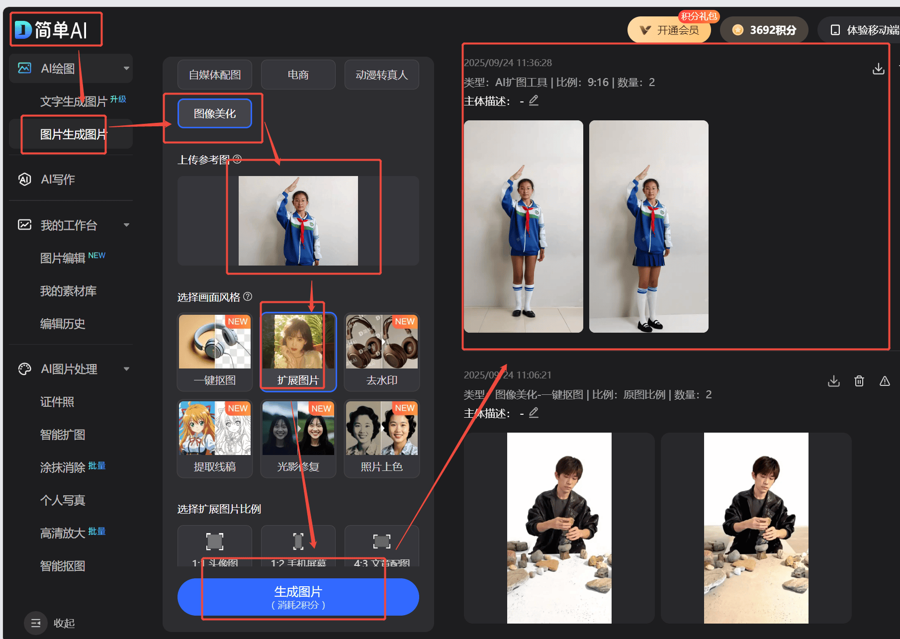 简单AI的“图像美化-扩展图片“