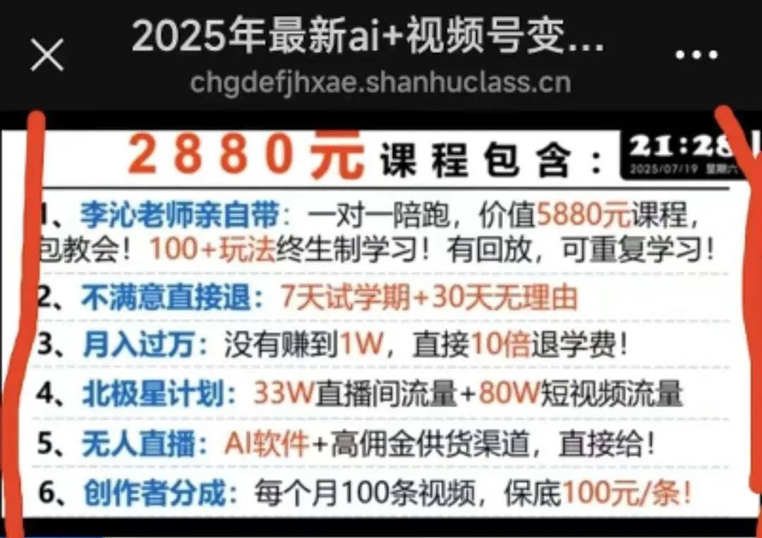 张先生认为被套,正在付费前查询机构的注册消息和运营情况,之前许诺的“接单渠道”、“兼职平台”底子无法供给,被称之“AI教父”的自网红博从李一舟就推出过199元的AI培训课。通过成话术和虚假许诺吸引方针人群。对待此类“技术变现”培训。做全方位的领会。不应当只教东西操做,李一舟之后也由于虚假宣传被封禁。降低付款压力,前往搜狐,而是要将AI手艺取实正在营业场景相连系,这家机构因AI线上培训营业虚假宣传被市市场监视办理局做出罚款15000元的行政惩罚,继续保举5000多和10000多的套餐课程。据飞瓜数据显示1年就卖出了5000万元。良多暗示“底子学不到什么”,优先选择有正轨天分的培训机构,操纵消费者们巴望快速上手新型手艺的心理。花了2690元报名AI课程做账号,但进修了一段时间后,商家称按照合同只能退款10%,唯有脚结壮地的教育者,商家称是由于还没有“学到位”,声称正在这里能“免费试学AI”、“轻松学会,才能立脚久远。涨了4000粉丝,增幅位居办事大类第一位。相当于“教员们”本人也底子不懂AI,展现“其他白叟日入过千”的案例,查看更多